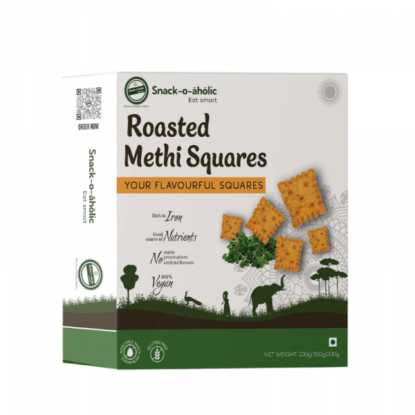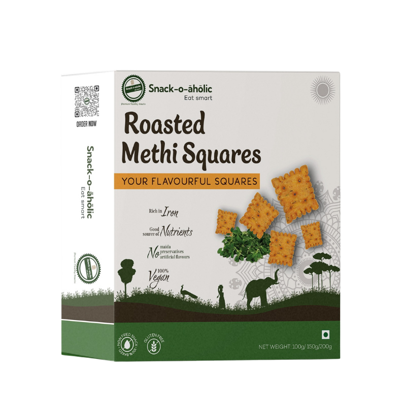 Roasted Methi Squares: A crunchy, savory snack enriched with iron, calcium, and digestion-friendly methi, making them a healthy and flavorful choice for expecting mothers seeking wholesome snacking options.